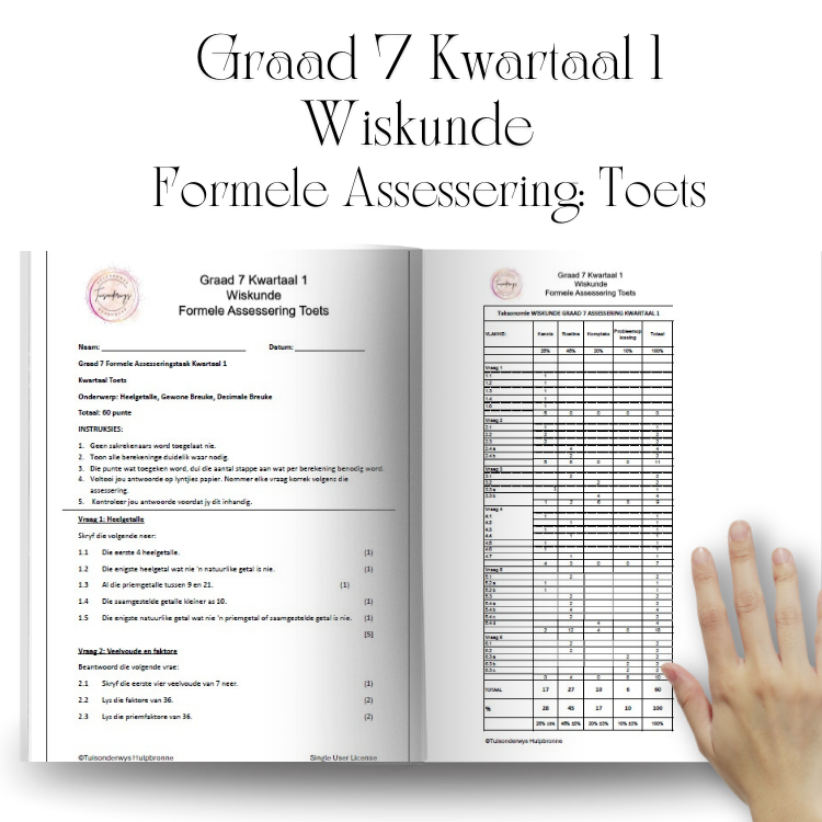 Graad 7 Kwartaal 1 Wiskunde Formele Assesseringstoets Totaal 60 Punte Sluit in: Toets, Memorandum en Taksonomie