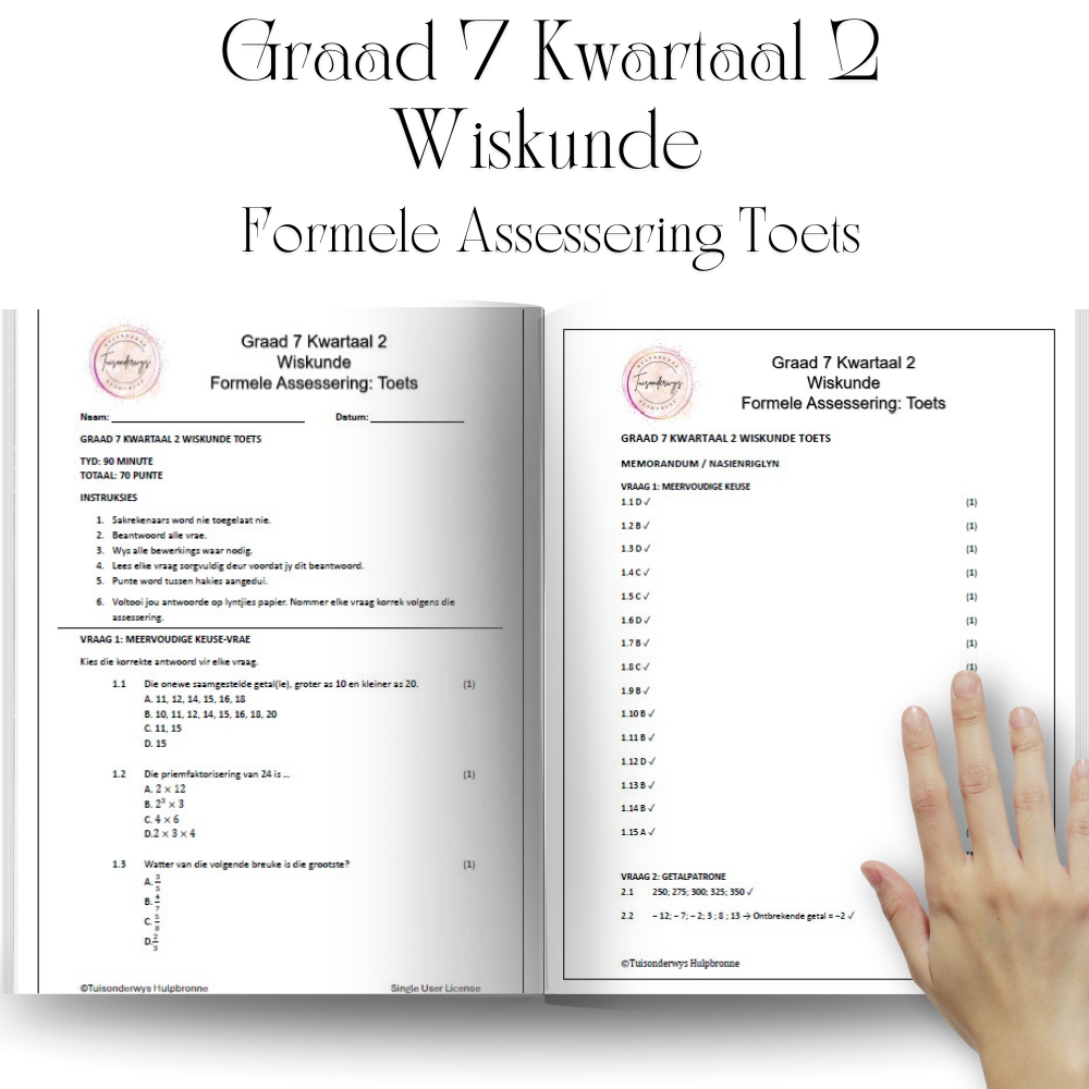 Graad 7 Kwartaal 2 Wiskunde Formele Assessering Toets Totaal: 70 Punte Sluit memorandum in